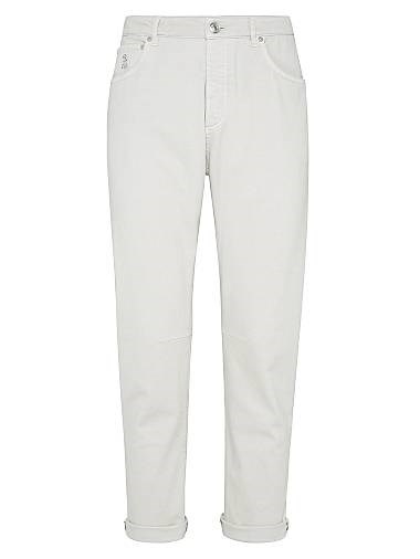 Джинсы Brunello Cucinelli, молочного цвета, денимовые, свободного кроя, с пятью карманами, производство Италия