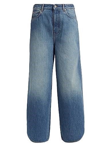 Джинсы Loewe из потёртого денима с высокой талией, прямыми штанинами и пятью карманами, производство в Италии