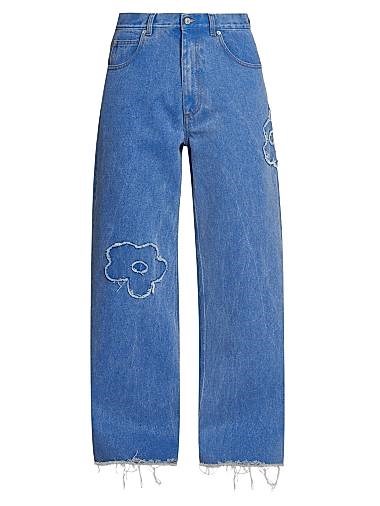 Джинсы с цветочными нашивками Marni имеют необработанный край, кожаную нашивку с логотипом и классический пятикарманный стиль.