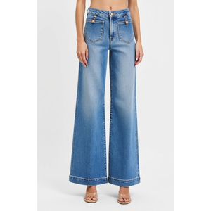 Современный взгляд на классические джинсы, эти модели с высокой талией и широкими брюками имеют стройный силуэт, который визуально удлиняет фигуру и подчеркивает талию. Нашивные карманы на груди с крупными пуговицами добавляют утилитарный стиль с вкраплениями изысканности. Чистый эффект выцветания, структурированный крой и подвернутый край создают универсальный профиль, который легко комбинируется с любыми блузками и укороченными свитерами.