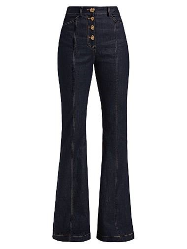 Джинсы Prabal Gurung из хлопковой смеси с расклешенным кроем, карманами и золотистой фурнитурой