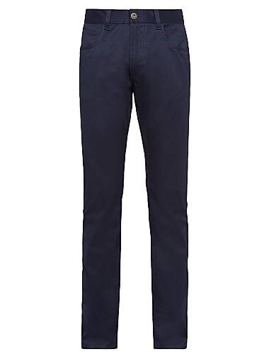 Эти джинсы, выполненные из стретчевого материала с зауженным кроем, отличают сырой отделкой. Модель в стиле пяти карманов украшена фирменной нашивкой и эмблемой в виде треугольника, представленным в концептуальном варианте в виде текстильного патча.