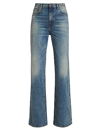 Джинсы R13 Jane с высокой посадкой и клешем, с эффектом делаве и пятью карманами