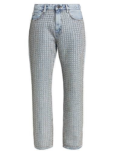 Джинсы The Showgirl от Frame имеют прямой крой с эффектным декором из страз.