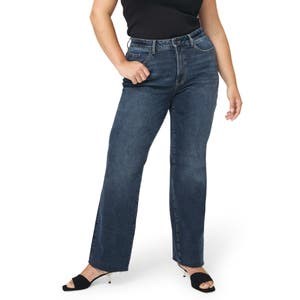 Эти стильные джинсы с прямыми ногами подойдут как для дневного, так и для вечернего выхода. Они имеют облегающую высокую талию, необработанные края и темную джинсовую ткань, которая сохраняет свою форму.