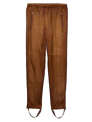 Джоггеры из велюра от Prada из 100% кожи ягненка с эластичным поясом и боковыми молниями