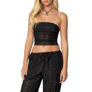 Наслаждайтесь солнечными днями в этом лёгком топе с вышивкой, который имеет кокетливую шнуровку на спине и укороченный подол.