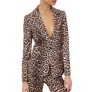 Созданный для эффектного выхода, этот смелый блейзер с животным принтом выполнен из матового сатина и имеет контурирующий силуэт с подушечками на плечах для выразительного образа.