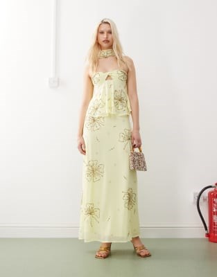 Эксклюзивная макси-юбка с вышивкой цветов от Reclaimed Vintage Limited Edition, с высокой талией, в жёлтом цвете специально для ASOS