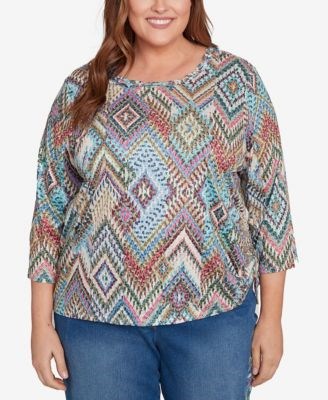 Эль-Пасо большого размера от Alfred Dunner: топ с детализированным воротником и длинными рукавами