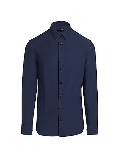 Изготовленная из комфортного эластичного джерси, эта спортивная рубашка Giorgio Armani обладает классическим воротником и манжетами на пуговицах.