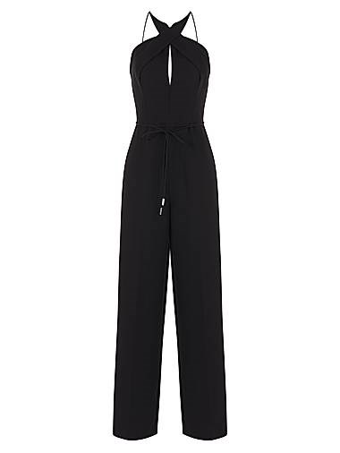 Эластичный креповый комбинезон Lou от Halston с отделкой под горлышко и зауженными штанинами