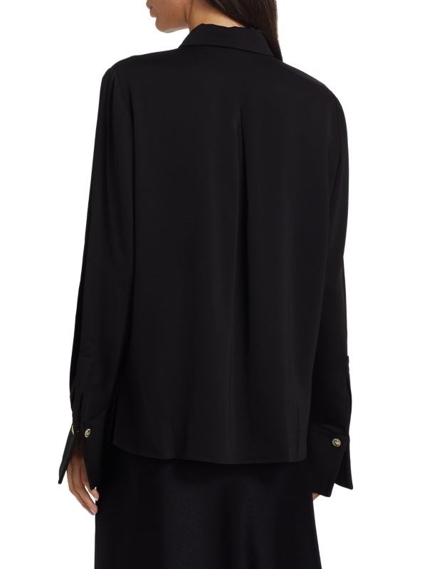 Блуза Lumi от Kobi Halperin подчеркивает изящный силуэт, оформленный воротником и скрытой застежкой на кнопки.