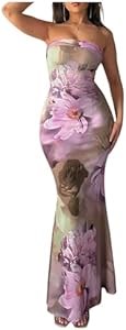 Цветочный принт, бесшовный ворот, без рукавов, с открытой спиной, хвост, приталенный крой, макси длина, бретельное платье для женщин.