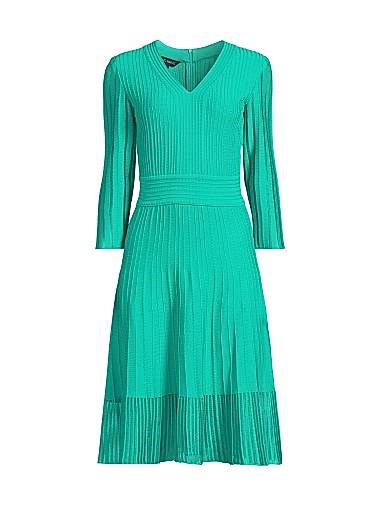 Это платье миди от Ming Wang выполнено из плиссированной трикотажной ткани и дополнено полупрозрачными деталями на рукавах и краю.