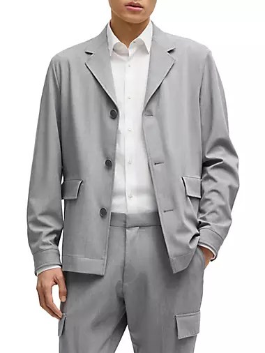 Модная куртка для мужчин от Boss с просторным кроем, выполненная из комбинированной ткани с добавлением шерсти и комфортной эластичности.