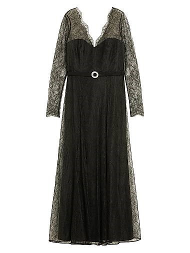 Элегантное платье Venosa от Marina Rinaldi с поясом, прозрачными кружевными вставками и длинными рукавами