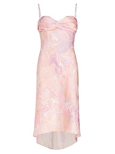 Платье с драпировкой от Alejandra Alonso Rojas привлекает внимание swirling-abstraktniy принтом и элегантным дизайном. Модель выделяется глубоким декольте в форме сердечка и зауженной спиной.