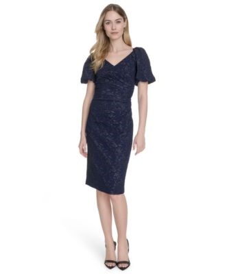 Элегантное женское платье-футляр Eliza J с V-образным вырезом и короткими рукавами из эластичного жаккарда