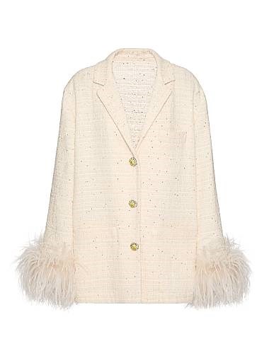 Элегантный твидовый жакет Valentino Garavani с вышивкой из страусиных перьев и ювелирным видом застежки
