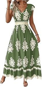 Этническое макси-платье с коротким рукавом, V-образным вырезом и оборкой от Floerns