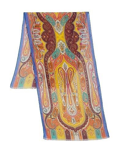 Etro Шарф из льна и шелка с узором пейсли, 70% лен, 30% шелк, размер 114 см x 356 см