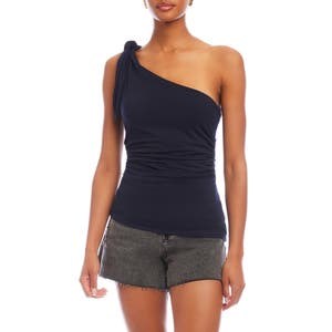 Fifteen Twenty Топ Harper на одно плечо с узлом, рюши, эластичный джерси, 92% вискоза, 8% спандекс