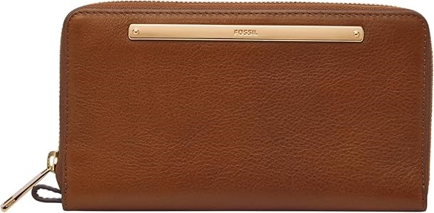 Fossil Женский кожаный кошелек-клатч с молнией и съемным ремешком на запястье, черный, 13 отделений для карт