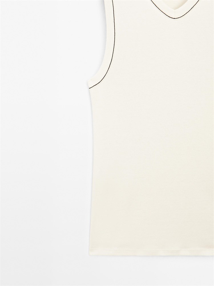 Футболка без рукавов из 100% хлопка Massimo Dutti с контрастными вставками и V-образным вырезом