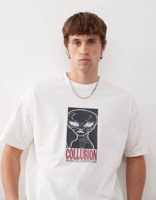 Футболка Collusion с принтом инопланетянина, с короткими рукавами, молодёжного кроя, 100% хлопок