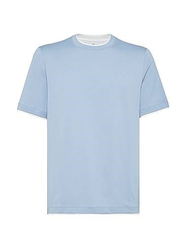 Футболка из 100% хлопка Brunello Cucinelli с круглым вырезом и эффектом многослойности, производство Италия
