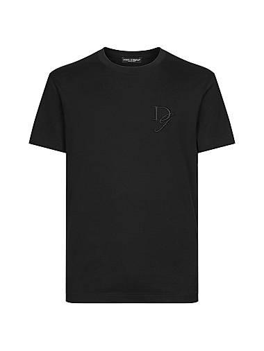Футболка из хлопка с круглым вырезом от Dolce &, Gabbana с вышитым логотипом, произведенная в Италии