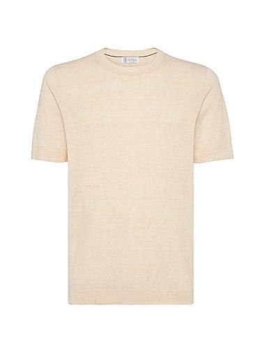 Футболка из льна и хлопка от Brunello Cucinelli с круглым вырезом и ручной обработкой швов, произведенная в Италии