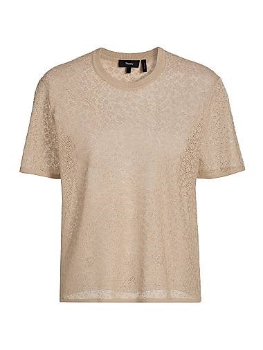 Футболка с круглым вырезом и свободным кроем из цветочного кружева от Theory, 65% хлопок, 35% нейлон