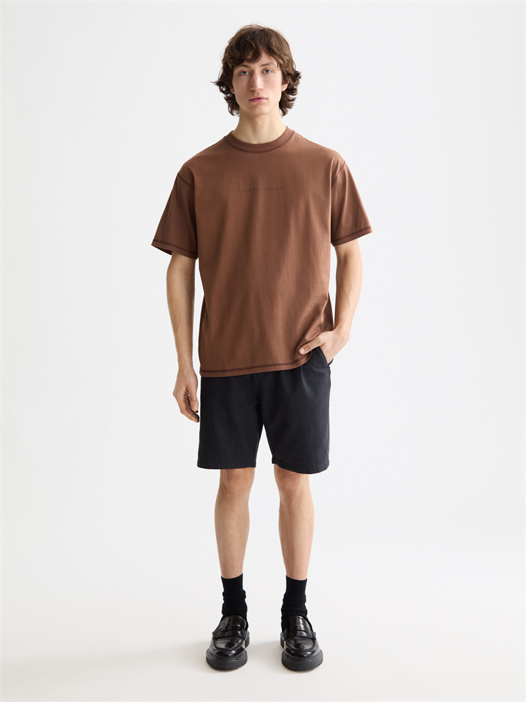 Футболка свободного кроя, дополненная ненавязчивым логотипом, идеально подходит для повседневного стиля.