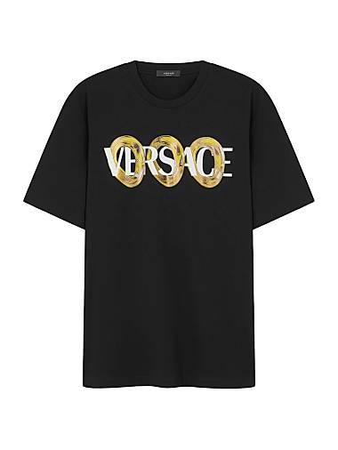 Футболка с круглым вырезом, изготовленная из хлопка, украшена логотипом Maxi Chain от Versace на груди.