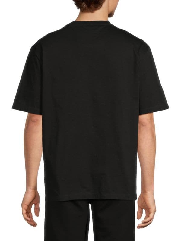 Эта хлопковая футболка от Versace имеет круглый вырез и выделяется ярким графическим логотипом на груди.