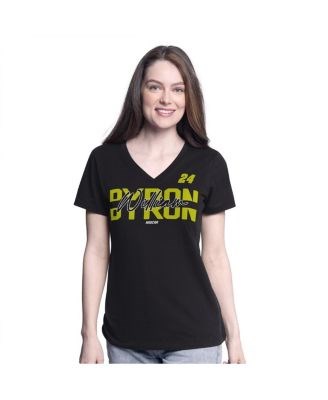 G-Iii Женская чёрная футболка William Byron Batter Up для любителей гонок с V-образным вырезом из 60% хлопка