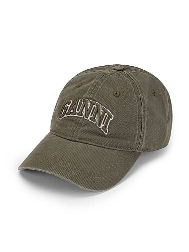 Ganni Кепка из потертого хлопкового канваса с вышивкой, 100% органический хлопок, регулируемая застежка