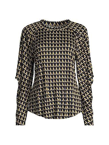 Лонгслив Liaison от Ginger & Smart выполнен из шелка и вискозы. Он украшен стильным геометрическим треугольным принтом и детализирован драпированными рукавами.