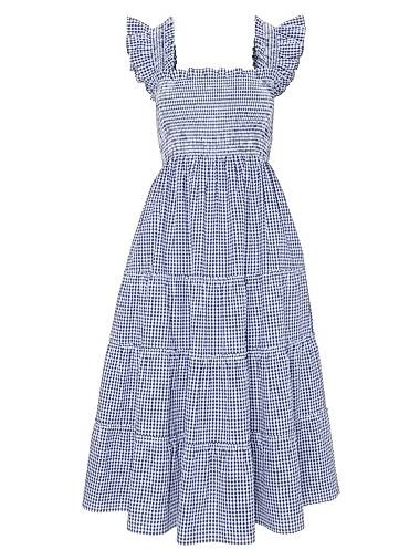 Познакомьтесь с универсальным платьем Nap Dress. Это наша фирменная модель, мягкая, удобная и достаточно привлекательная для ношения весь день и ночь. Платье Ellie выполнено в форме А-силуэта с нашей запатентованной эластичной отделкой Nap Smocking, рюшами на рукавах, многослойной миди-юбкой и карманами.