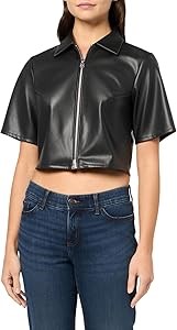 Hugo Boss Женская рубашка из искусственной кожи HUGO с застежкой-молнией и пуговицами, 100% полиэстер