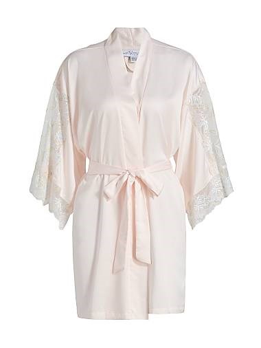 Халат Lacey из матового сатина с эластичными кружевными вставками на рукавах и манжетах для элегантного образа.