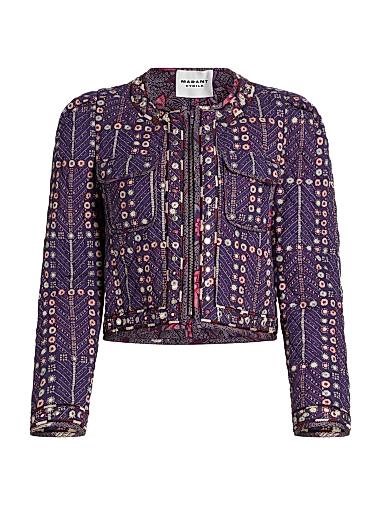 Isabel Marant Etoile’s Christy jacket is crafted of printed cotton and cut in a boxy, cropped silhouette.