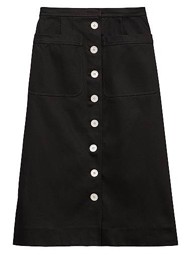 Юбка из хлопкового твила от Prada с расклешённым кроем, накладными карманами и застёжкой на кнопках