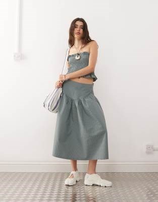 Юбка-миди COLLUSION с заниженной талией в зелёную клетку, высокая посадка, боковые карманы