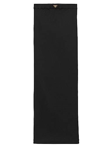 Юбка приталенная из ребристого трикотажа с металлическим треугольным логотипом Prada, Италия