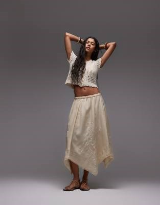 Юбка Topshop с нежной вышивкой и асимметричным подолом, низкой посадкой и эластичным поясом