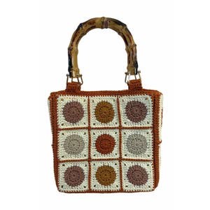 Замысловатая вязаная работа демонстрирует эти цвета в узоре, который смотрится современно и в то же время вне времени. Ручка из ротанга придает натуральный и землистый оттенок, идеально дополняющий палитру заката.