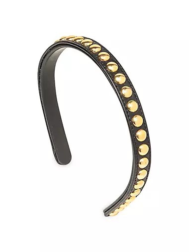 Эта повязка на голову Parker, изготовленная вручную в Нью-Йорке, выполнена из мягкой кожи и украшена металлическими заклепками золотистого цвета.